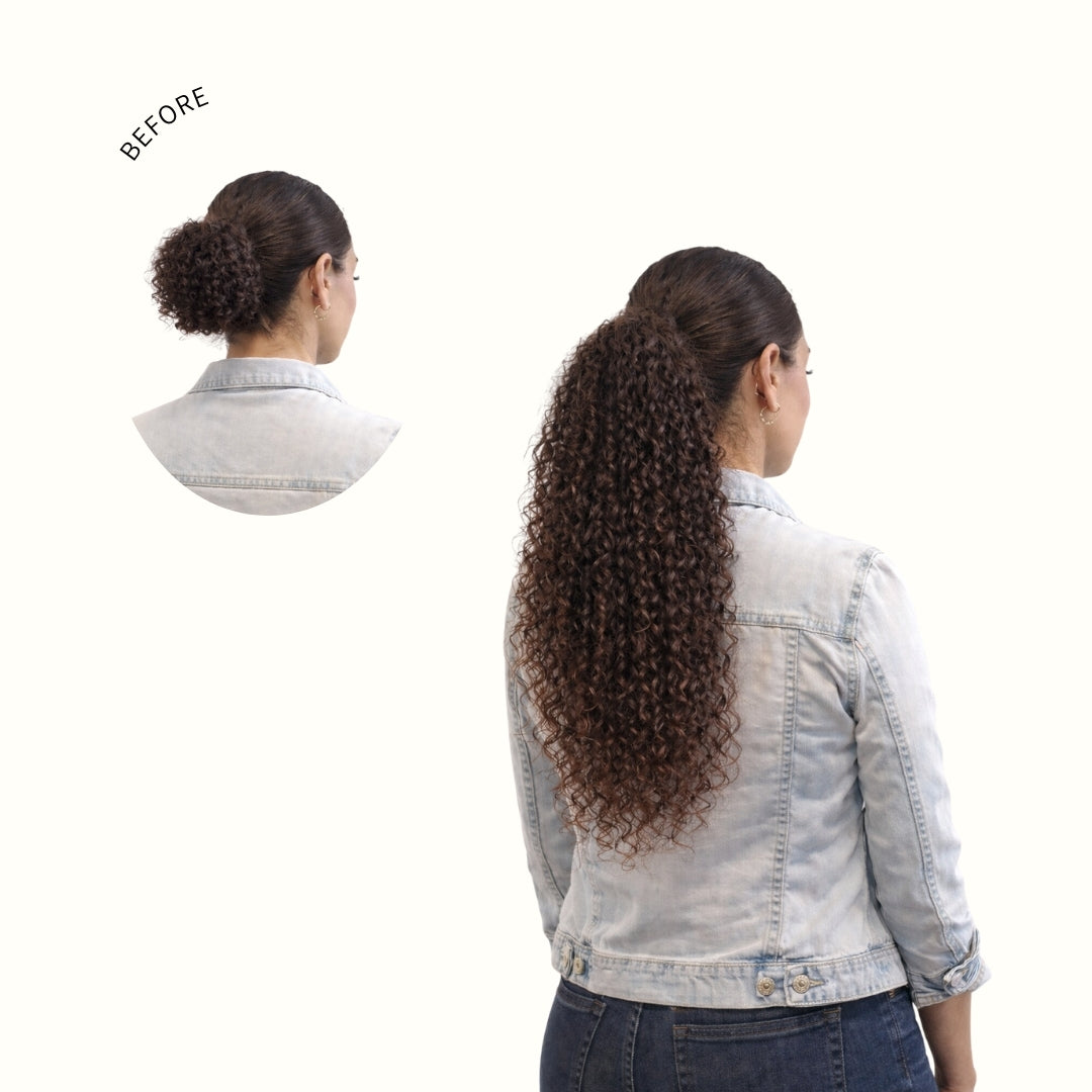 Meet the Drawstring Ponytail designed to look and feel like your natural hair, just fuller, longer, and undeniably polished.