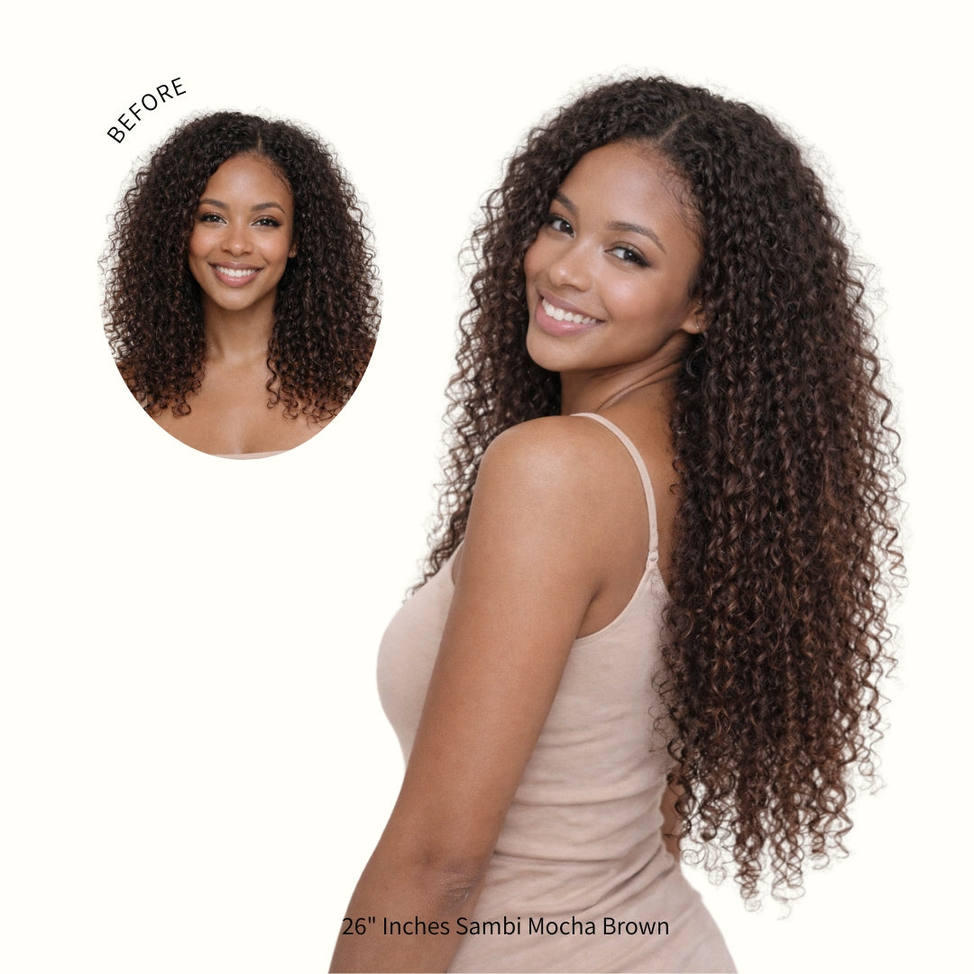 Transform your curls in minutes with our Sambi Curly Clip-Ins a beautifully blended 3A–3B texture designed to mimic natural curl variation. Featuring a combination of slightly tighter and looser curl patterns, Sambi delivers the most realistic, multi-dimensional blend for curly hair.